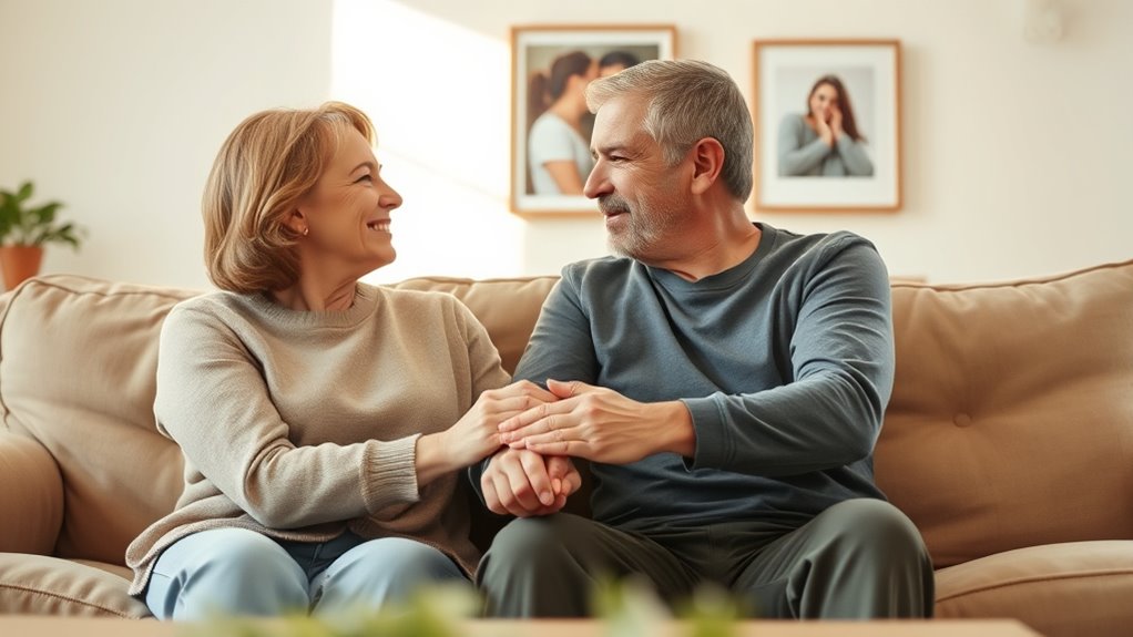 Think of trust as a fragile seed beginning to sprout. You’ll notice emotional openness blooming, where both of you share feelings without fear, and consistent honesty becomes the sunlight nurturing growth. When your partner openly admits mistakes and listens without defensiveness, trust is returning. Small, genuine gestures—like eye contact or supportive words—signal progress, showing that the foundation of honesty is strengthening and the emotional connection is slowly healing.