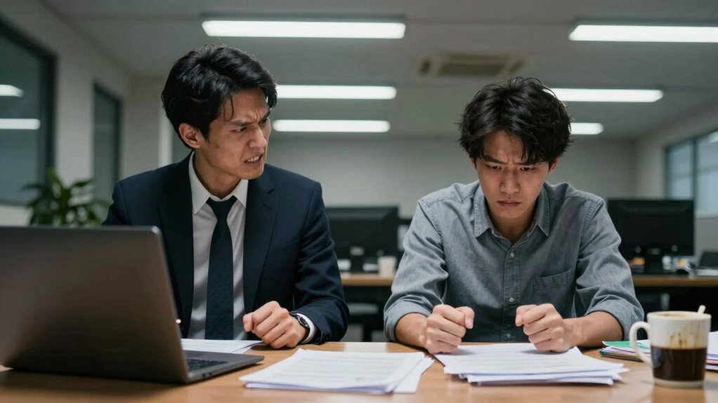 When a supervisor and subordinate’s affair becomes known, the fallout often worsens first because trust is broken, emotions run high, and workplace boundaries are blurred. Power dynamics and perceptions of favoritism can lead to suspicion and tension among colleagues. Managers may struggle to address the situation without bias, causing further confusion. As tensions escalate, workplace morale and reputation suffer. If you want to understand how to navigate these tricky situations and start fixing the damage, keep exploring these challenges further.