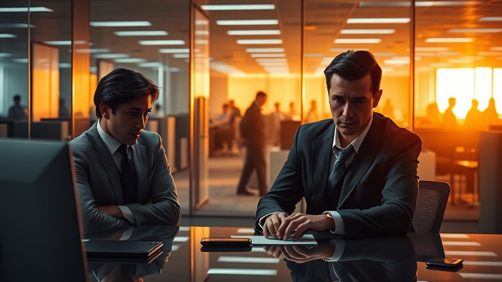 Managing workplace affairs can be tricky—office romances might bring excitement but also risk your reputation and career if boundaries aren’t clear. Be honest with yourself about your intentions and respect professional boundaries at all times. Recognize the power dynamics involved, especially if there’s a boss-employee relationship, and consider how your actions impact colleagues and team trust. Staying transparent and responsible can help you avoid betrayal; if you explore further, you’ll discover how to manage these delicate situations wisely.