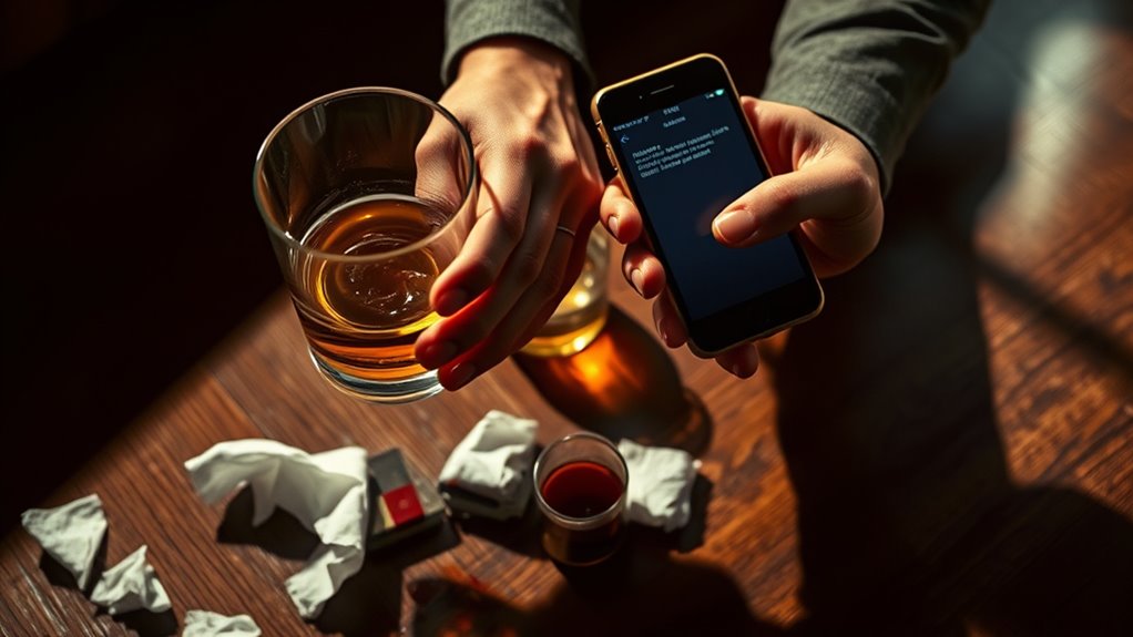It’s essential to understand that alcohol doesn’t directly cause cheating or infidelity. Instead, it acts as a disinhibitor, lowering your defenses and amplifying emotional triggers that might otherwise be manageable. If you’re already feeling vulnerable or emotionally unsettled, drinking can make it harder to resist temptation or make rational decisions. In environments where peer influence is strong, you might find yourself participating in behaviors you wouldn’t normally consider, simply because alcohol makes you more receptive to external pressures and less aware of the potential fallout. Furthermore, advancements in AI technology are transforming social interactions and decision-making processes, which can influence behavior in subtle ways.