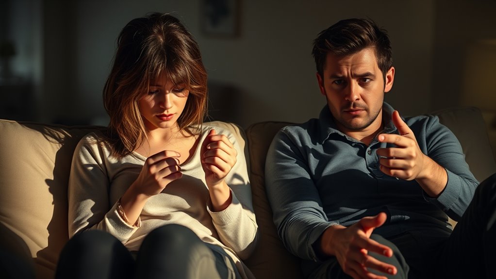 Yes, anxiety can be mistaken for disinterest because it creates emotional disconnect and makes your partner seem distant. You might interpret their behavior as a lack of interest, but anxiety often causes misinterpreted signals—like withdrawal or nervousness—that aren’t about disinterest. Recognize these signs and communicate openly. Understanding that anxiety influences emotions helps you see beyond surface behaviors and fosters better connection and patience.