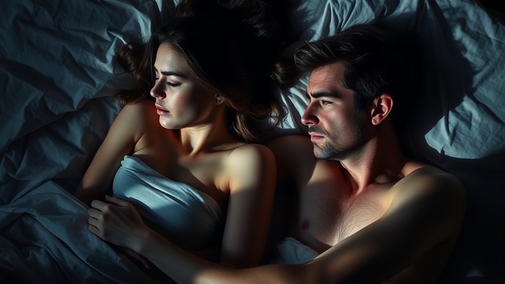 Like a ghost from Dickens’ time, you might notice your partner avoiding eye contact or tensing up. If they seem distracted, hesitant, or withdraw during intimacy, it signals they may feel pressured. Look for signs of consent awareness and emotional safety, like hesitant responses or a lack of enthusiasm. Open communication helps them feel safe, so check in gently and respect their boundaries to foster trust and genuine connection.