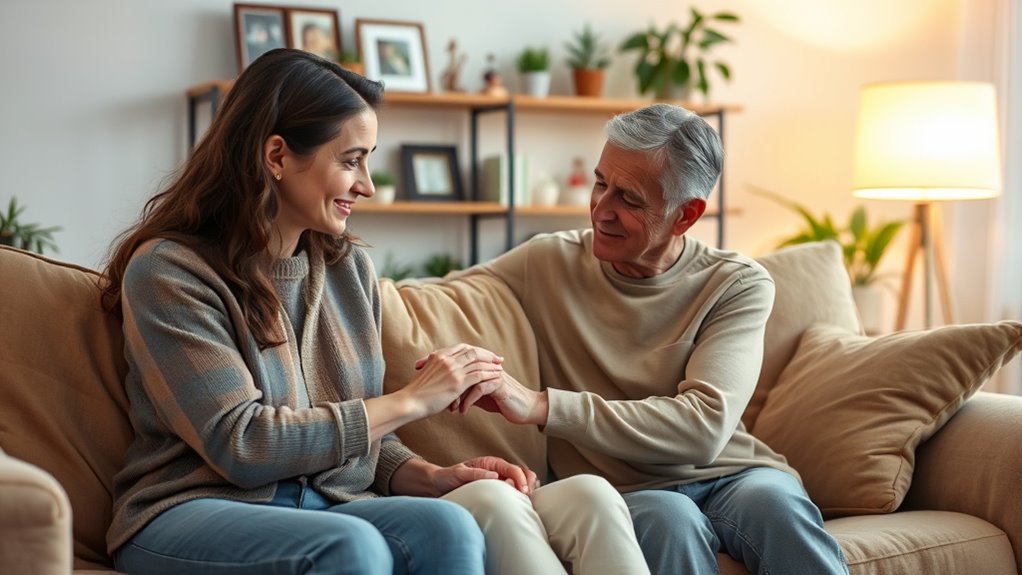 Supporting a friend with love addiction means showing compassion without judgment by listening actively and validating their feelings. Set healthy boundaries to avoid enabling harmful behaviors, and encourage self-care and seeking professional help when needed. Avoid giving unsolicited advice or criticizing, and instead provide a safe space for open emotional expression. Keep patience and consistency at the forefront, focusing on empowerment rather than fixing. If you want to learn more effective ways to help, there’s valuable guidance ahead.