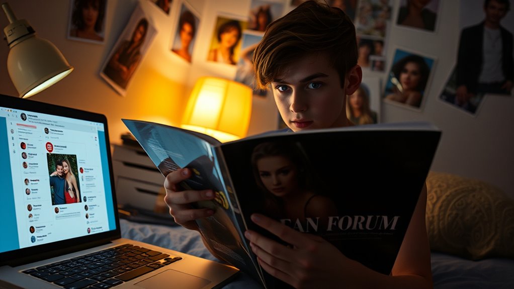 Your celebrity fixation can sometimes turn into obsessive stalking if you’re not careful. When admiration spirals into obsession, it can lead to dangerous behaviors, like intrusive monitoring or risky encounters. This kind of obsessive stalking crosses a line, transforming harmless fandom into a threat. Stay aware of your boundaries, and remember that healthy admiration respects privacy and safety—don’t let your admiration become a dangerous pursuit.