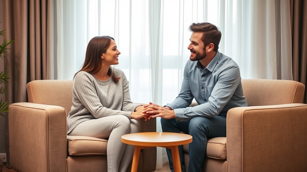 Trust rebuilding is at the core of therapy’s effectiveness in these situations. Rebuilding trust doesn’t happen overnight; it’s a gradual process that requires transparency, consistency, and patience. Your therapist can help you develop practical strategies, like setting clear boundaries or improving communication, to foster an environment where trust can be restored. You’ll learn how to express your needs and listen to your partner’s perspective, creating a foundation of honesty and reliability. Over time, these efforts can help mend the cracks in your relationship and renew your sense of safety and security.