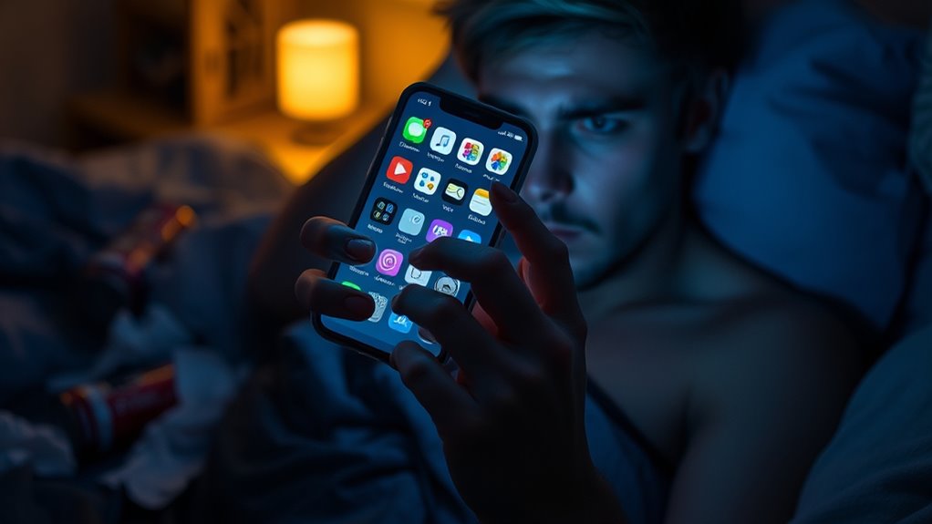 You might notice behavioral cues like constantly checking your phone, neglecting responsibilities, or feeling anxious when not using dating apps. Emotional signs include increased loneliness, mood swings, or feeling unable to control your usage. These signs suggest you’re developing an addiction. Recognizing these early helps you take steps to balance your habits—so stay mindful of how dating apps impact your mental health and daily life.