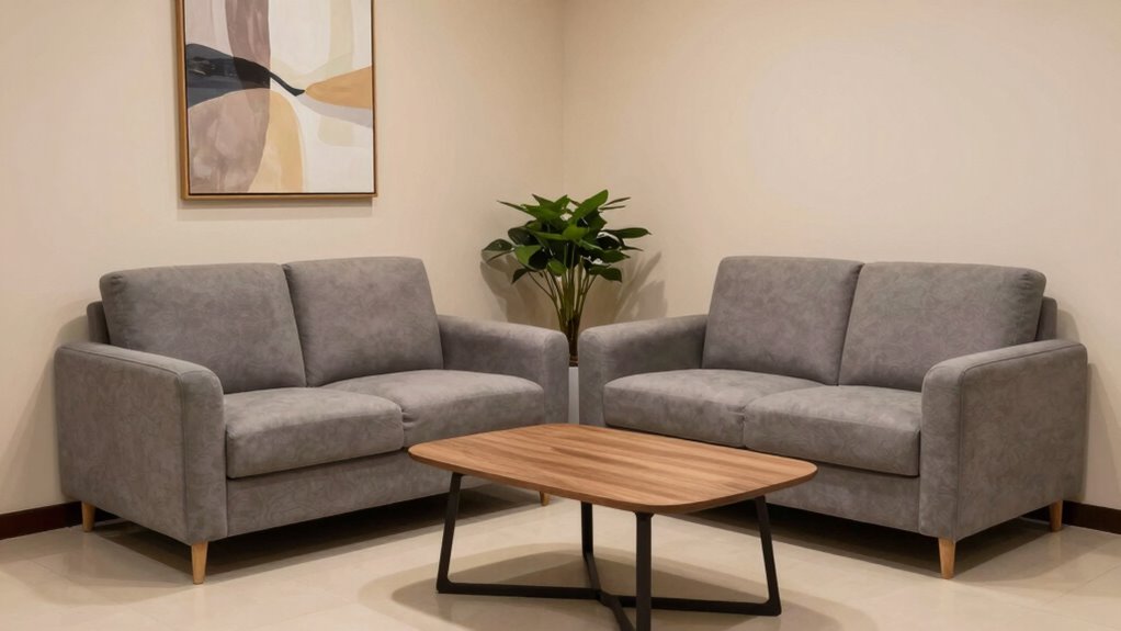 Selecting a loveseat that fits seamlessly into your counseling office involves more than just comfort and durability; it also requires careful consideration of style. I recommend choosing a design that aligns with your overall decor theme, whether modern, mid-century, or traditional. The color and fabric should complement existing furniture to create a welcoming atmosphere. It’s crucial to pick a shape and silhouette that harmonize with other pieces, maintaining a cohesive look. You want a style that balances visual appeal with functionality, so it doesn’t overwhelm or clash with your space. A well-chosen loveseat reflects professionalism while making clients feel relaxed and comfortable. Ultimately, the right style enhances the room’s ambiance, fostering trust and openness during sessions.