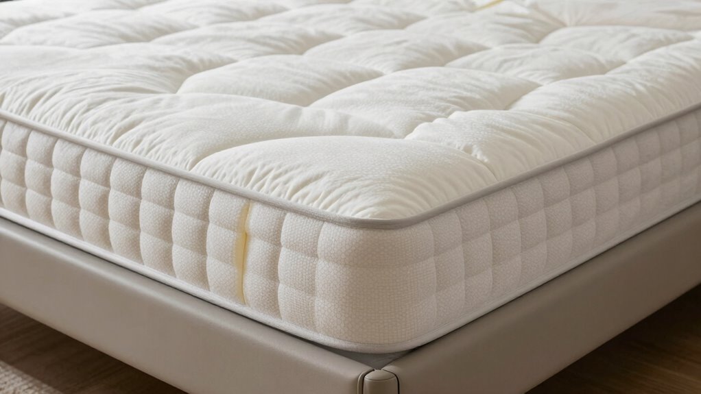 Reinforced side layers are essential for ensuring that a hybrid mattress provides lasting stability and support along its edges. These layers prevent sagging and edge roll-off, allowing you to use the full surface without feeling like you might fall off. Strong edge support from reinforced layers also helps maintain the mattress’s shape and structural integrity over time, even with frequent use. High-density foam or coil reinforcements along the perimeter enhance durability and distribute weight evenly, making the edges sturdier. Properly designed reinforced side layers make it easier to get in and out of bed safely, especially for those with mobility issues. Overall, these layers are key to maximizing comfort, safety, and longevity in a hybrid mattress.