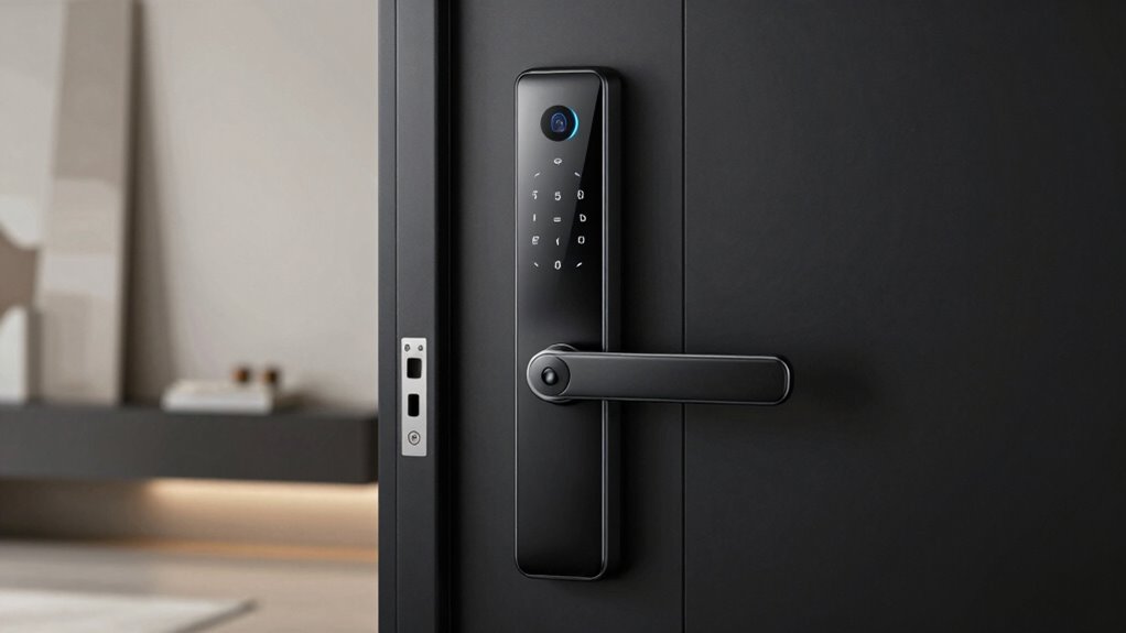 I’ve found that the battery life of these smart locks usually lasts between six months to a year, depending on usage. Imagine the quiet hum of the lock working seamlessly, even as its power slowly drains. I always keep spare batteries nearby, just in case. Regularly checking and replacing batteries guarantees your lock stays reliable, giving you peace of mind that your home remains secure without unexpected lockouts.